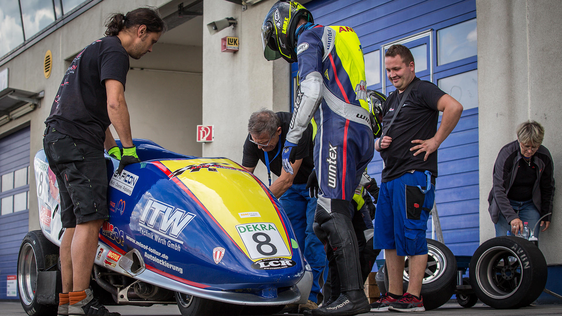 In der IDM Sidecar erlebten Markus Schlosser/Thomas Hofer noch eine Schrecksekunde, ehe sie vorzeitig den Titel feiern durften. Nach dem kurzen Supersprint am Samstag über sechs Runden lagen die Schweizer auch im langen Rennen am Sonntag in Führung. Beim Überrunden fuhr ihnen aber ein langsamer Fahrer mit voller Wucht ins Suzuki-Gespann. Schlosser kam von der Bahn ab und drehte sich.