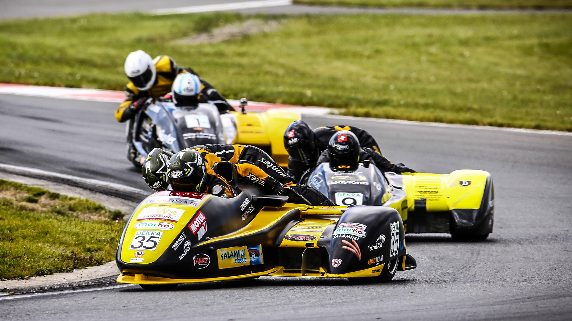 In der IDM Sidecar erlebten Markus Schlosser/Thomas Hofer noch eine Schrecksekunde, ehe sie vorzeitig den Titel feiern durften. Nach dem kurzen Supersprint am Samstag über sechs Runden lagen die Schweizer auch im langen Rennen am Sonntag in Führung. Beim Überrunden fuhr ihnen aber ein langsamer Fahrer mit voller Wucht ins Suzuki-Gespann. Schlosser kam von der Bahn ab und drehte sich.