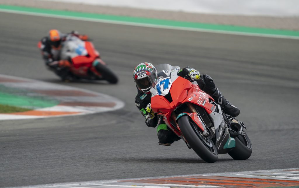 Bei den IDM-Tests in Aragon und Valencia lernte er nicht nur das ganze Team kennen, sondern tauchte auch in die elektronischen Tiefen der BMW ein. „Die zwei Tage in Aragon waren extrem wichtig für mich, um Verständnis aufzubauen, wie das Motorrad tickt.“ In den drei angesetzten Testtagen konnten sämtliche Fahrer nur in zwei Turns auf trockenem Boden ausrücken. „Es war eine Herausforderung für mich, bei der Zeitenjagd mitzumischen.“