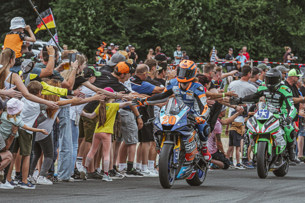 Nach einem verlängerten Startprozedere in der IDM Supersport auf dem Schleizer Dreieck gewann Melvin van der Voort (Team SWPN) auch den zweiten Lauf des Tages. Der Beinahe-Sturz des Meisterschaftsführenden Twan Smits (Team Apreco) könnte nun große Auswirkungen im Kampf um den Titel haben.