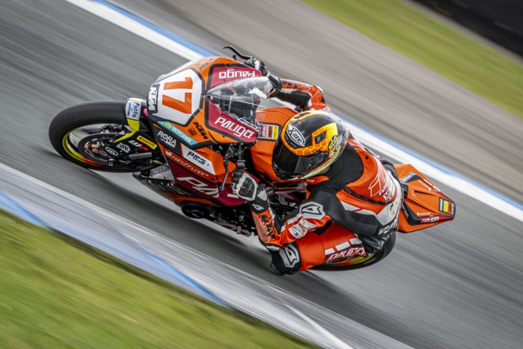 Nach zwei miserablen Trainings, in denen Philipp Tonn (Freudenberg KTM-Paligo Racing) aufgrund technischer Defekts nicht mehr als zwei Runden fahren konnte, gelang dem Sachsen in seiner letzten Trainingsrunde ein echter Coup. Mit einer Zeit von 1:52, 279 Minuten zog er an seinem Teamkollegen Oliver Svendsen vorbei und katapultierte sich auf die zweite Position. “Ich hoffe sehr, dass wenigstens im Qualifying das Motorrad einwandfrei läuft”, sagte er noch vor seinem letzten Versuch. Am Abend hatte er schließlich das nötige Quäntchen Glück auf seiner Seite.